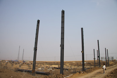 在項目部的周密組織下,全體施工人員頂烈日、戰(zhàn)風雨,迎著朝陽進現(xiàn)場,送走夕陽挑燈干,以超常規(guī)的打法搶進度,全力加快光伏產(chǎn)業(yè)園區(qū)建設步伐,截止發(fā)稿,基礎施工已經(jīng)全部完成,現(xiàn)已經(jīng)開始鋼構(gòu)立柱吊裝、鋼屋架安裝階段,工程形象一天一個樣。據(jù)項目經(jīng)理介紹,在整個園區(qū)開工的工程中,咱們的進度是最快的。項目部有信心通過“百日攻堅會戰(zhàn)”,全力加快施工速度,當好園區(qū)全線的領(lǐng)跑者,為公司樹立企業(yè)良好形象,向市政府遞交滿意的答卷。